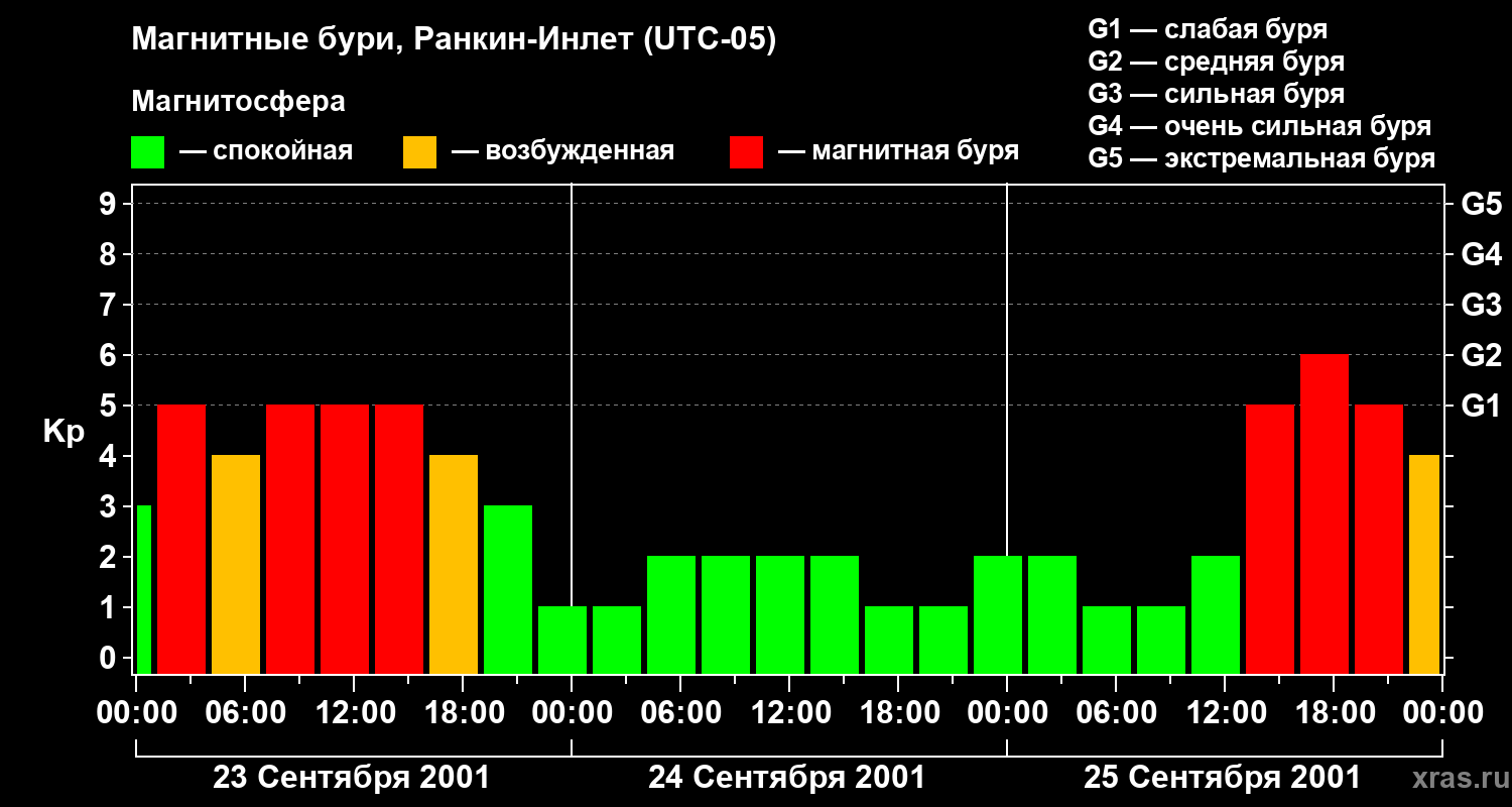 Магнитные бури в Ранкин-Инлете 25 сентября 2001 года