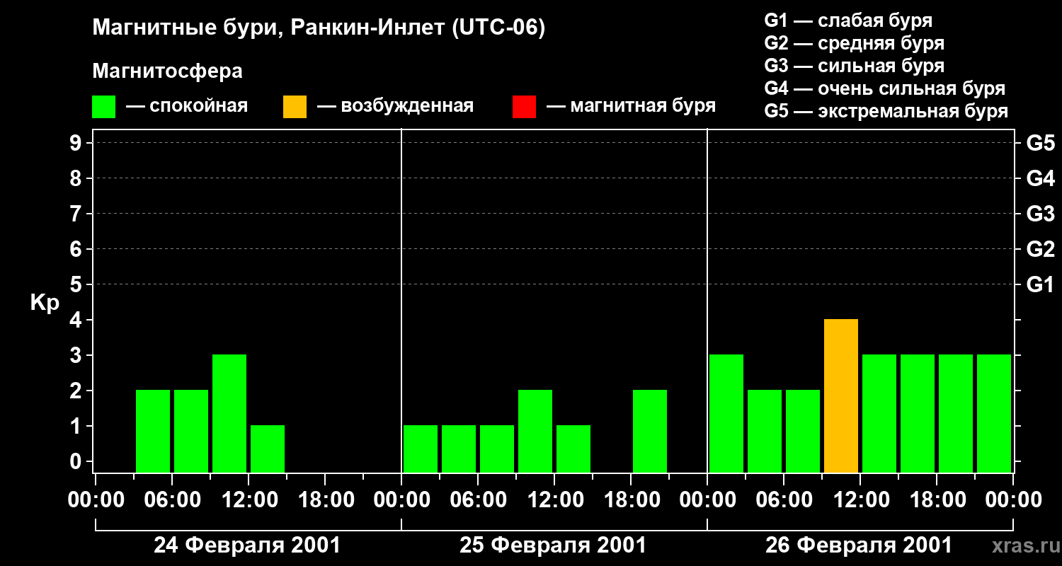 Магнитные бури в Ранкин-Инлете 26 февраля 2001 года