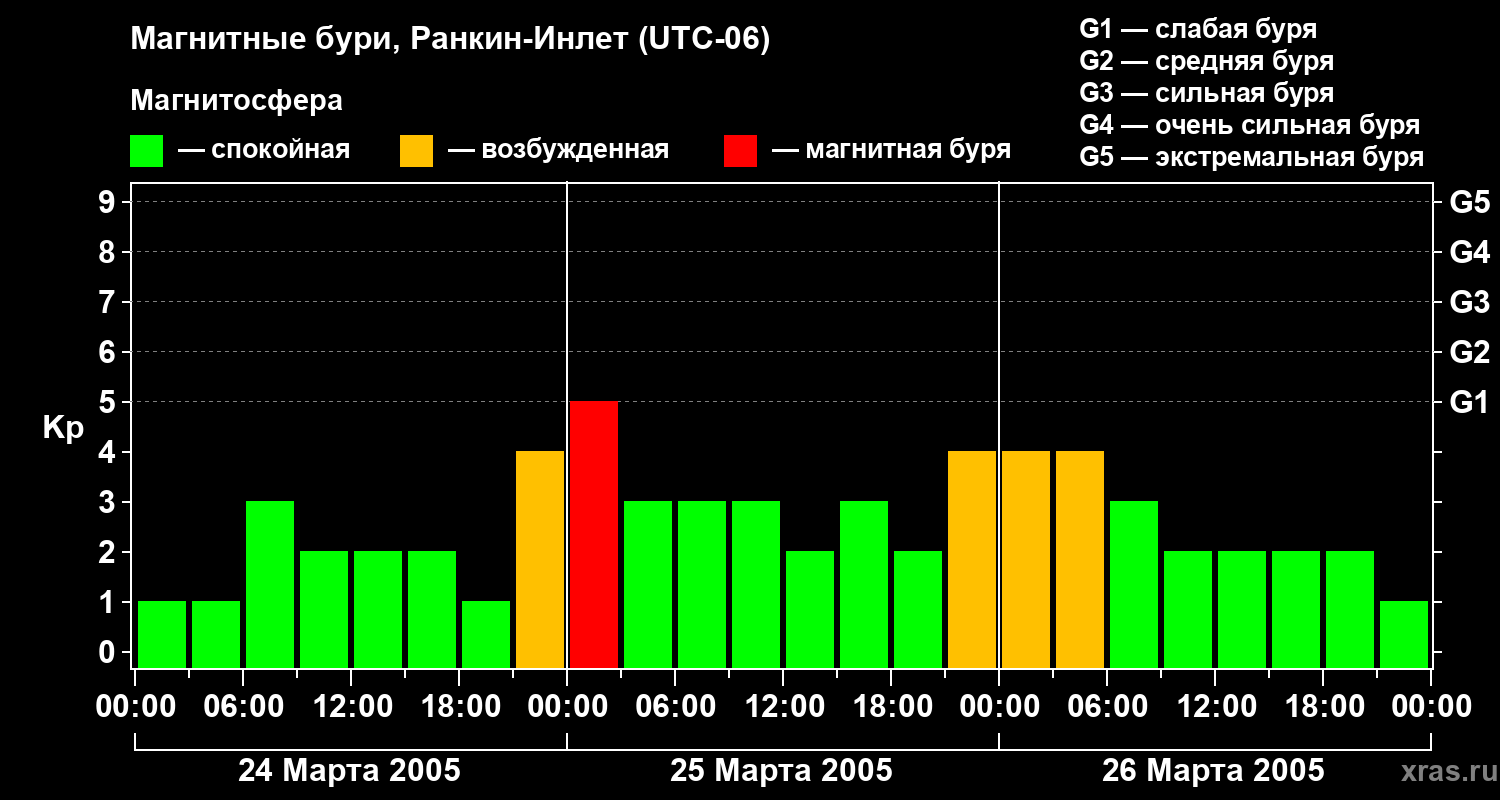 Магнитные бури в Ранкин-Инлете 26 марта 2005 года
