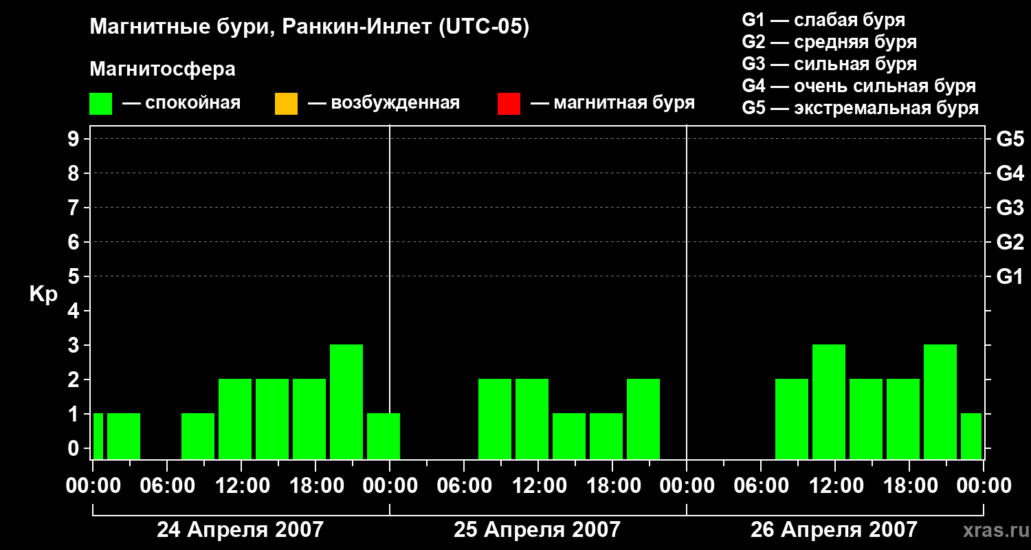 Магнитные бури в Ранкин-Инлете 26 апреля 2007 года