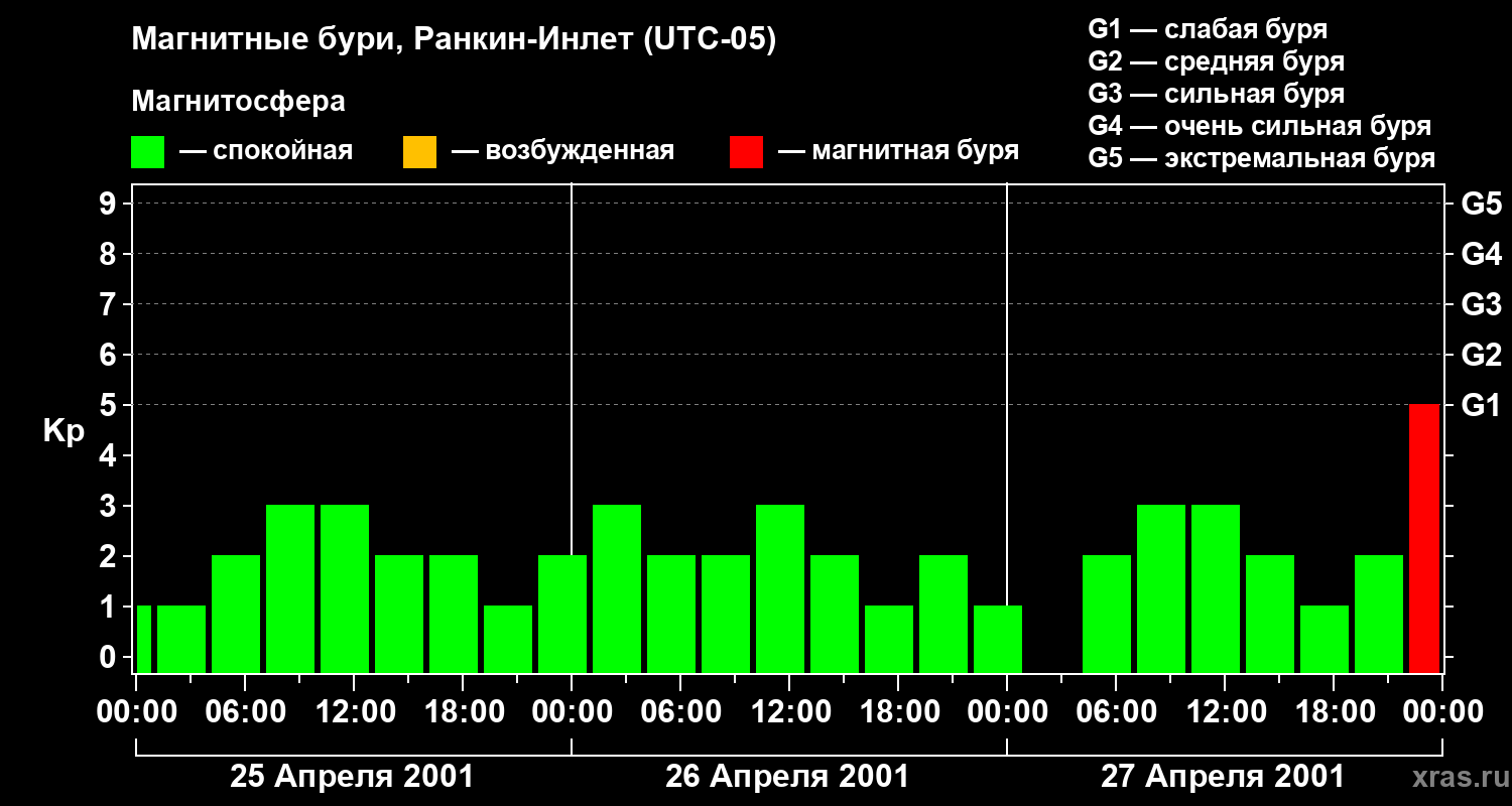 Магнитные бури в Ранкин-Инлете 27 апреля 2001 года