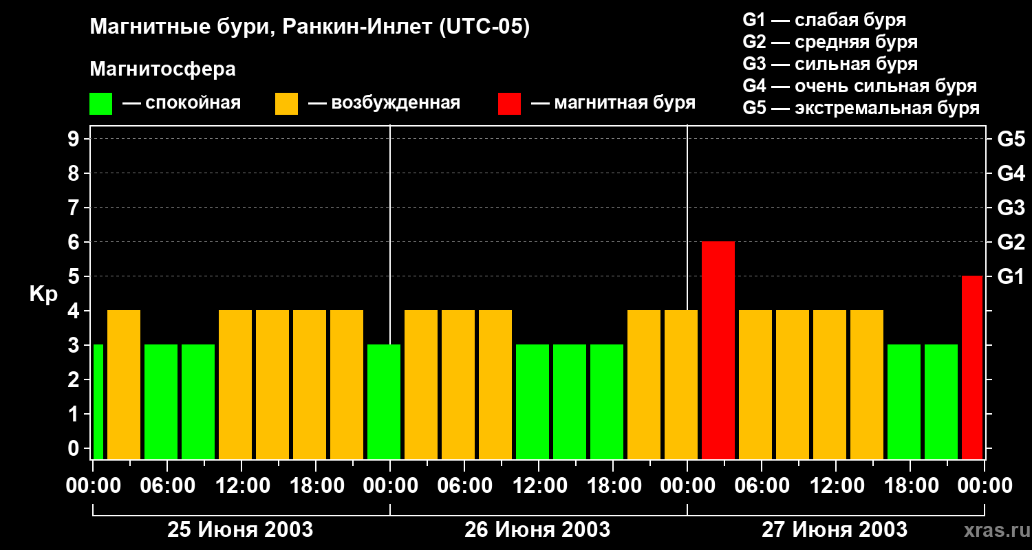 Магнитные бури в Ранкин-Инлете 27 июня 2003 года