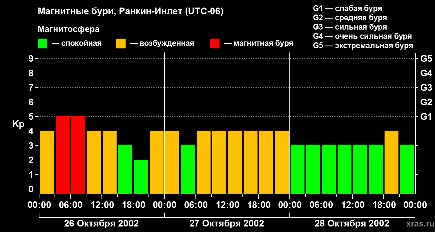Магнитные бури в Ранкин-Инлете в октябре 2002 года