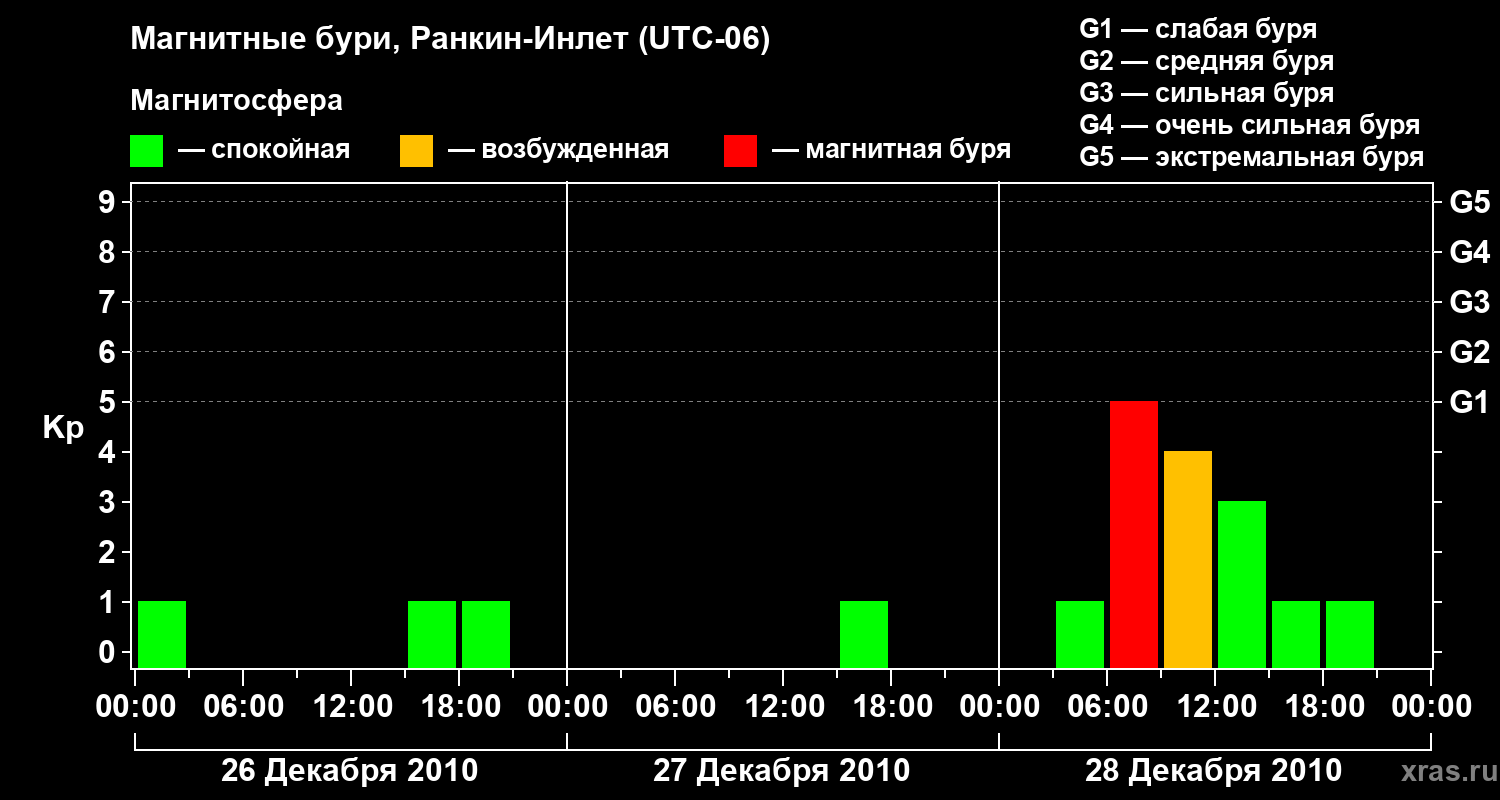 Магнитные бури в Ранкин-Инлете 28 декабря 2010 года