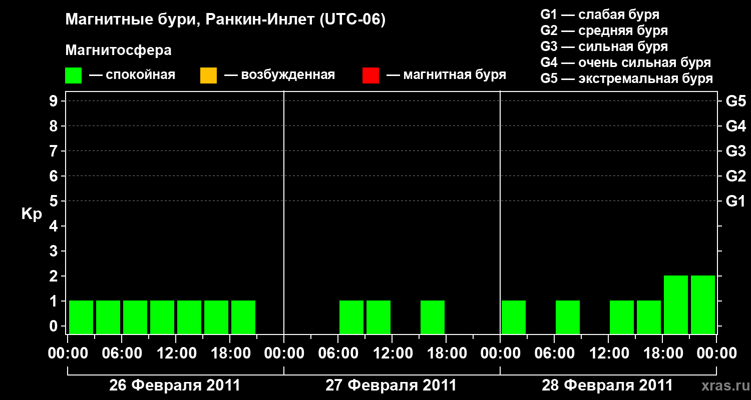 Магнитные бури в Ранкин-Инлете в феврале 2011 года