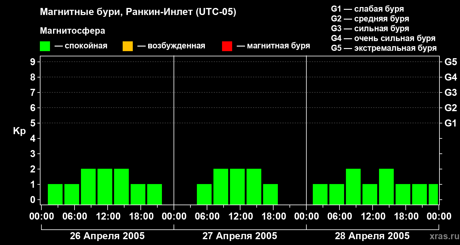 Магнитные бури в Ранкин-Инлете — 28 апреля 2005 года