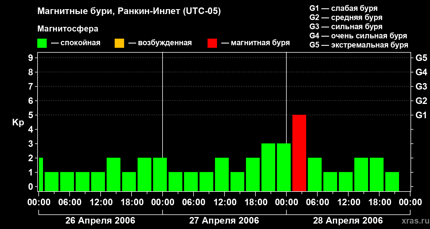 Магнитные бури в Ранкин-Инлете 28 апреля 2006 года
