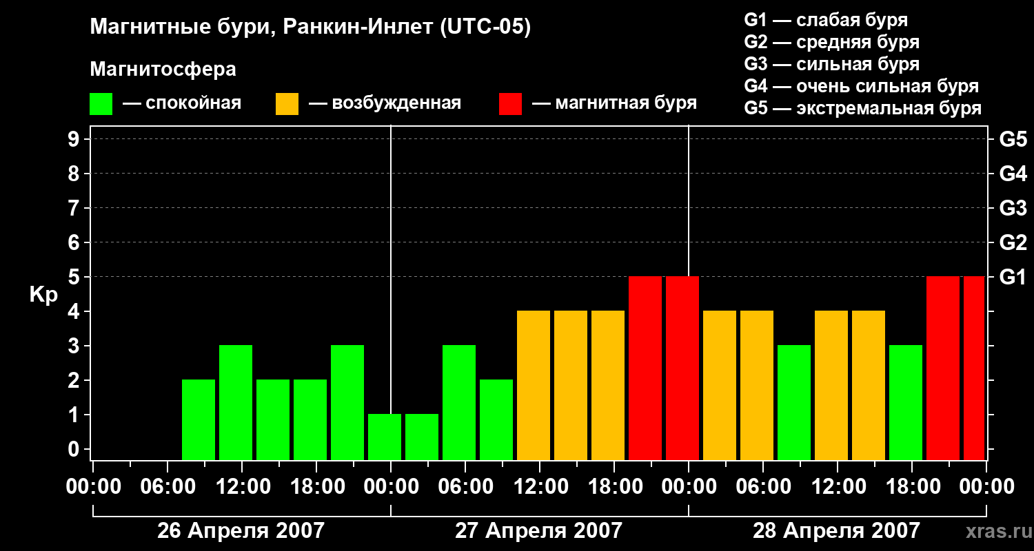 Магнитные бури в Ранкин-Инлете 28 апреля 2007 года