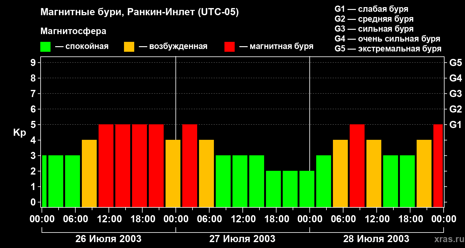 Магнитные бури в Ранкин-Инлете — 28 июля 2003 года
