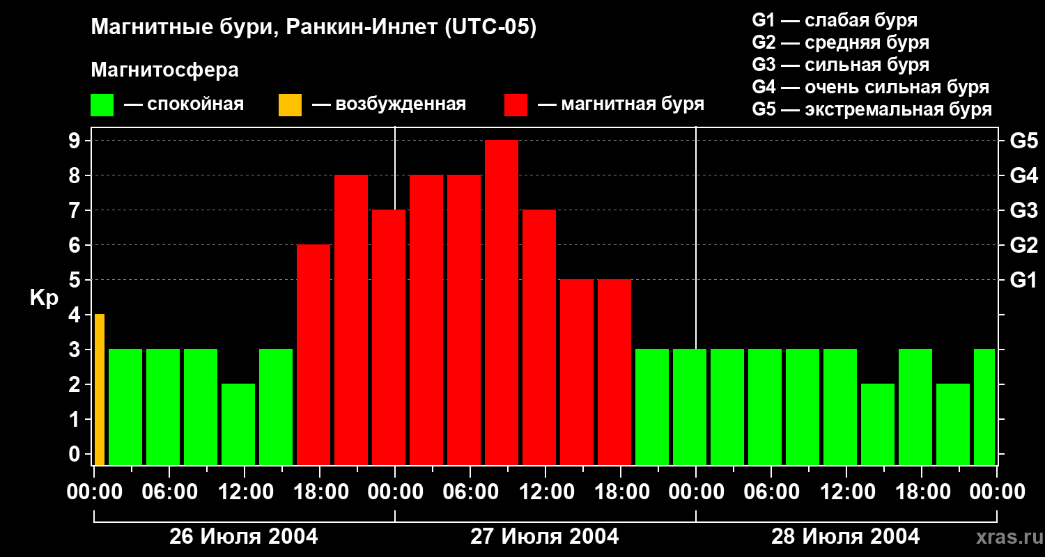 Магнитные бури в Ранкин-Инлете — 28 июля 2004 года