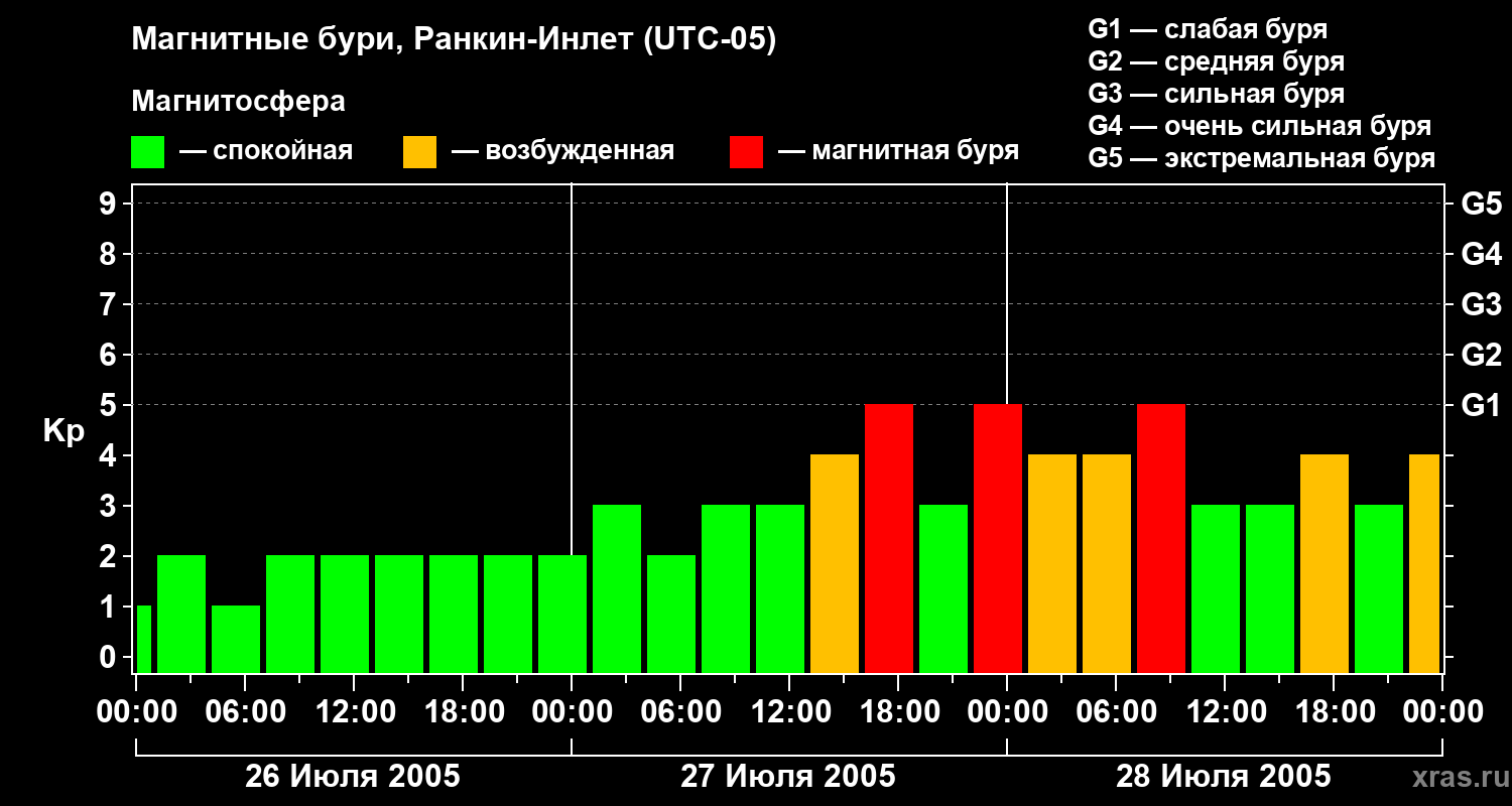 Магнитные бури в Ранкин-Инлете — 28 июля 2005 года
