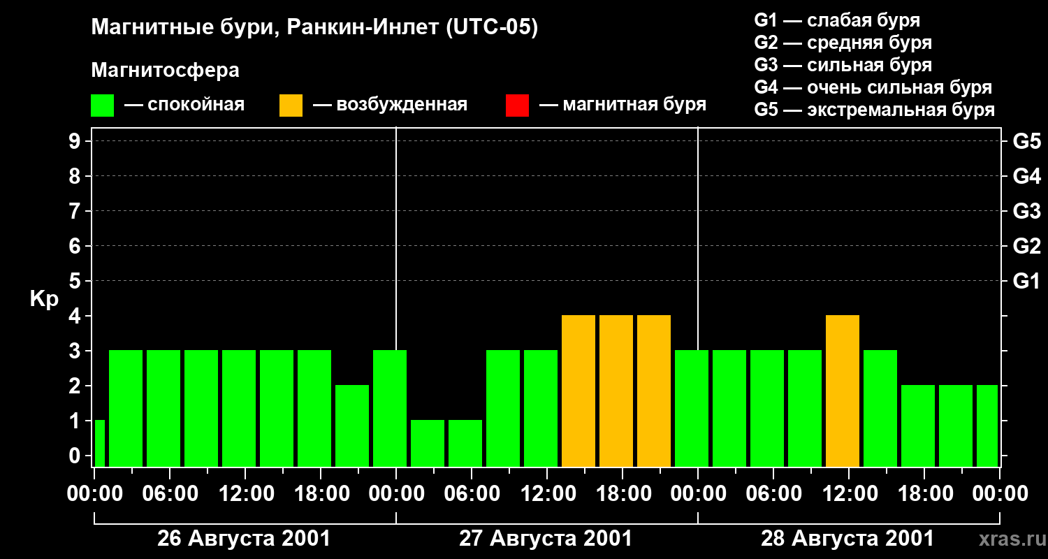 Магнитные бури в Ранкин-Инлете — 28 августа 2001 года