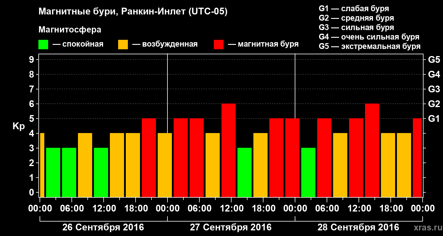Магнитные бури в Ранкин-Инлете в сентябре 2016 года
