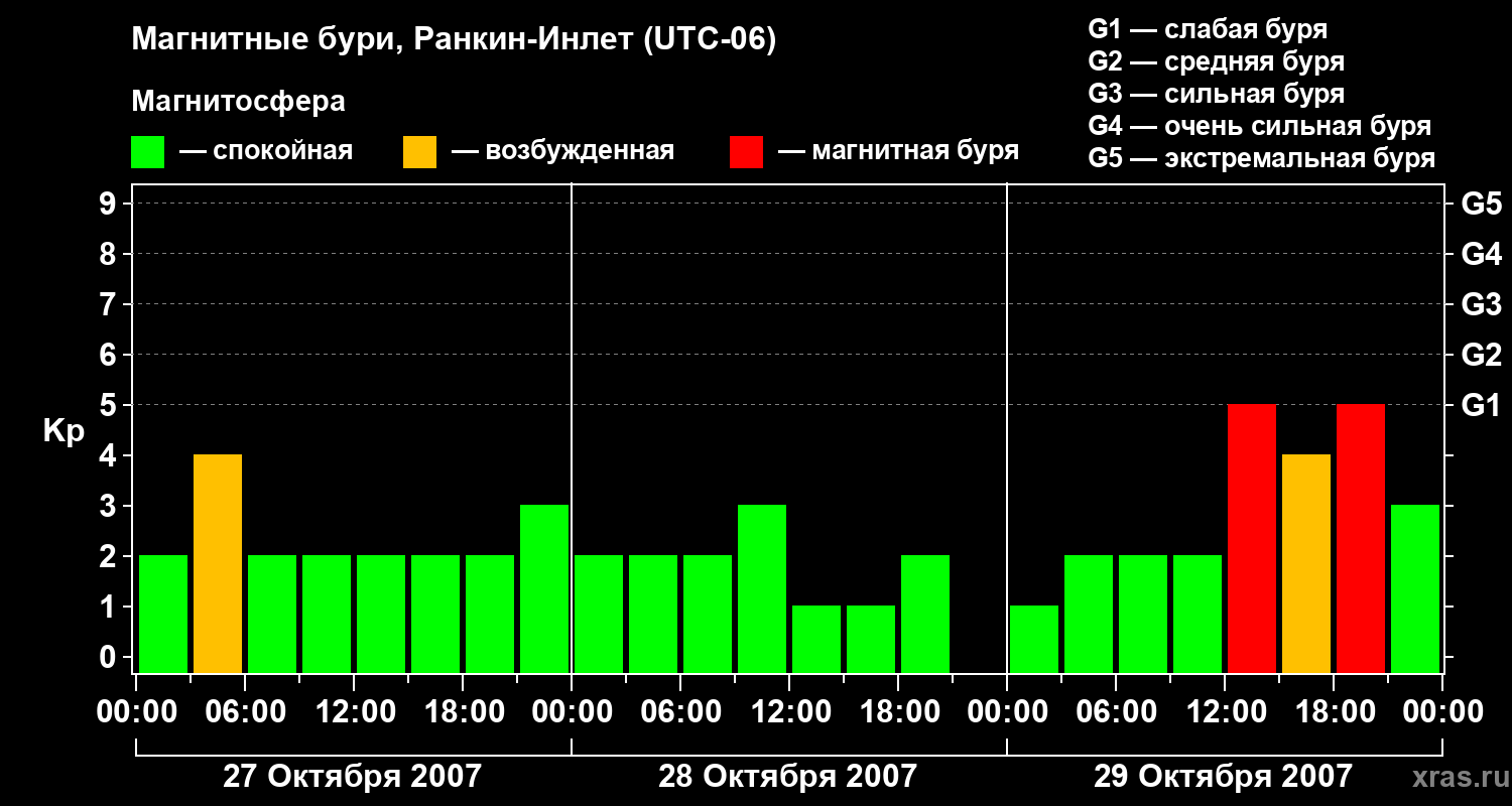 Магнитные бури в Ранкин-Инлете 29 октября 2007 года