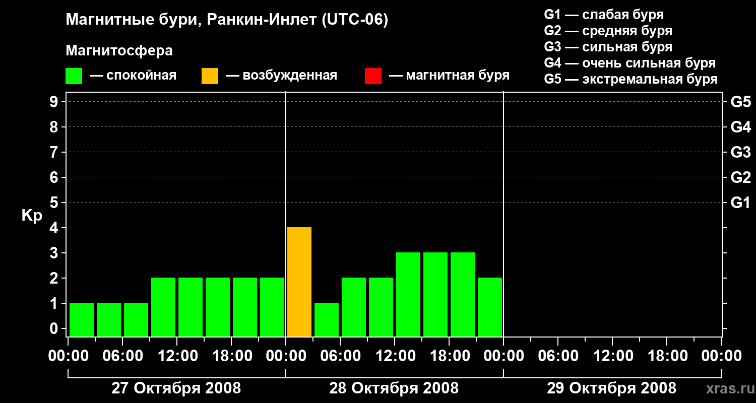 Магнитные бури в Ранкин-Инлете в октябре 2008 года