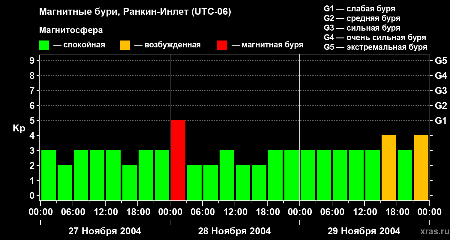 Магнитные бури в Ранкин-Инлете — 29 ноября 2004 года