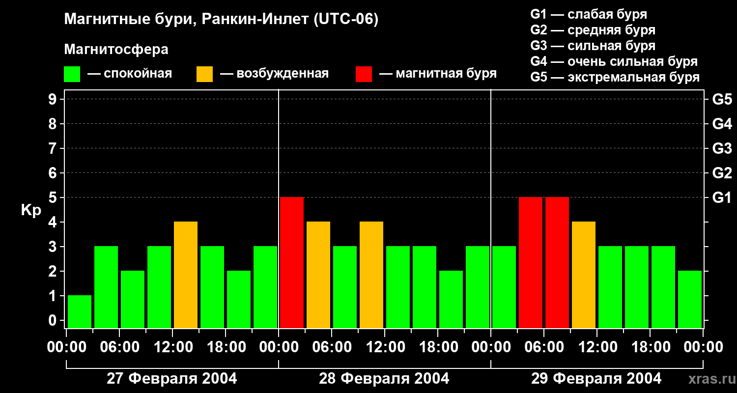 Магнитные бури в Ранкин-Инлете — 29 февраля 2004 года