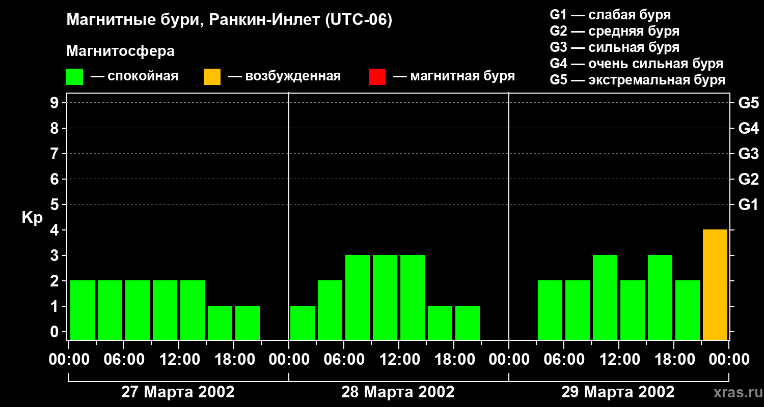 Магнитные бури в Ранкин-Инлете — 29 марта 2002 года