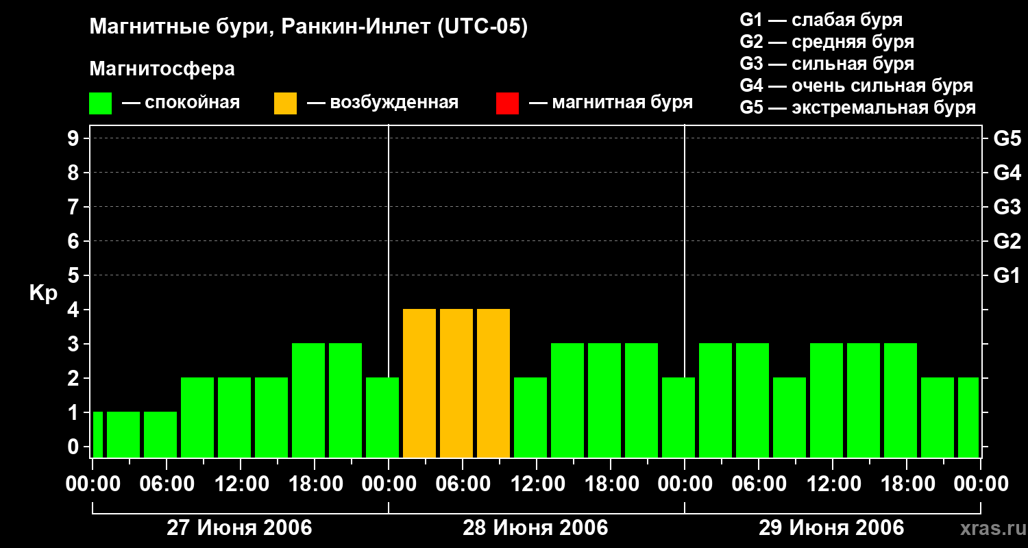 Магнитные бури в Ранкин-Инлете 29 июня 2006 года