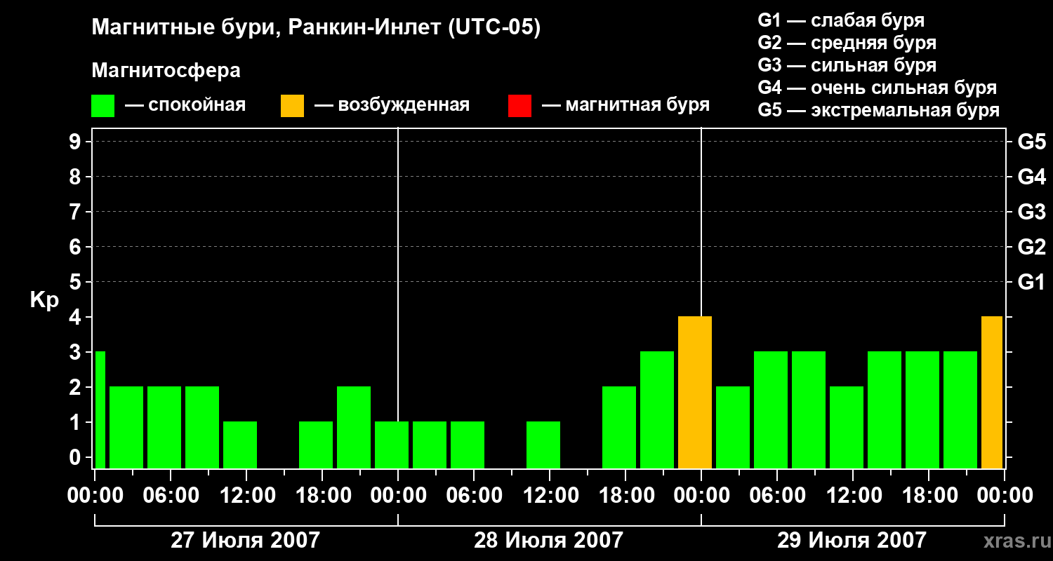 Магнитные бури в Ранкин-Инлете — 29 июля 2007 года