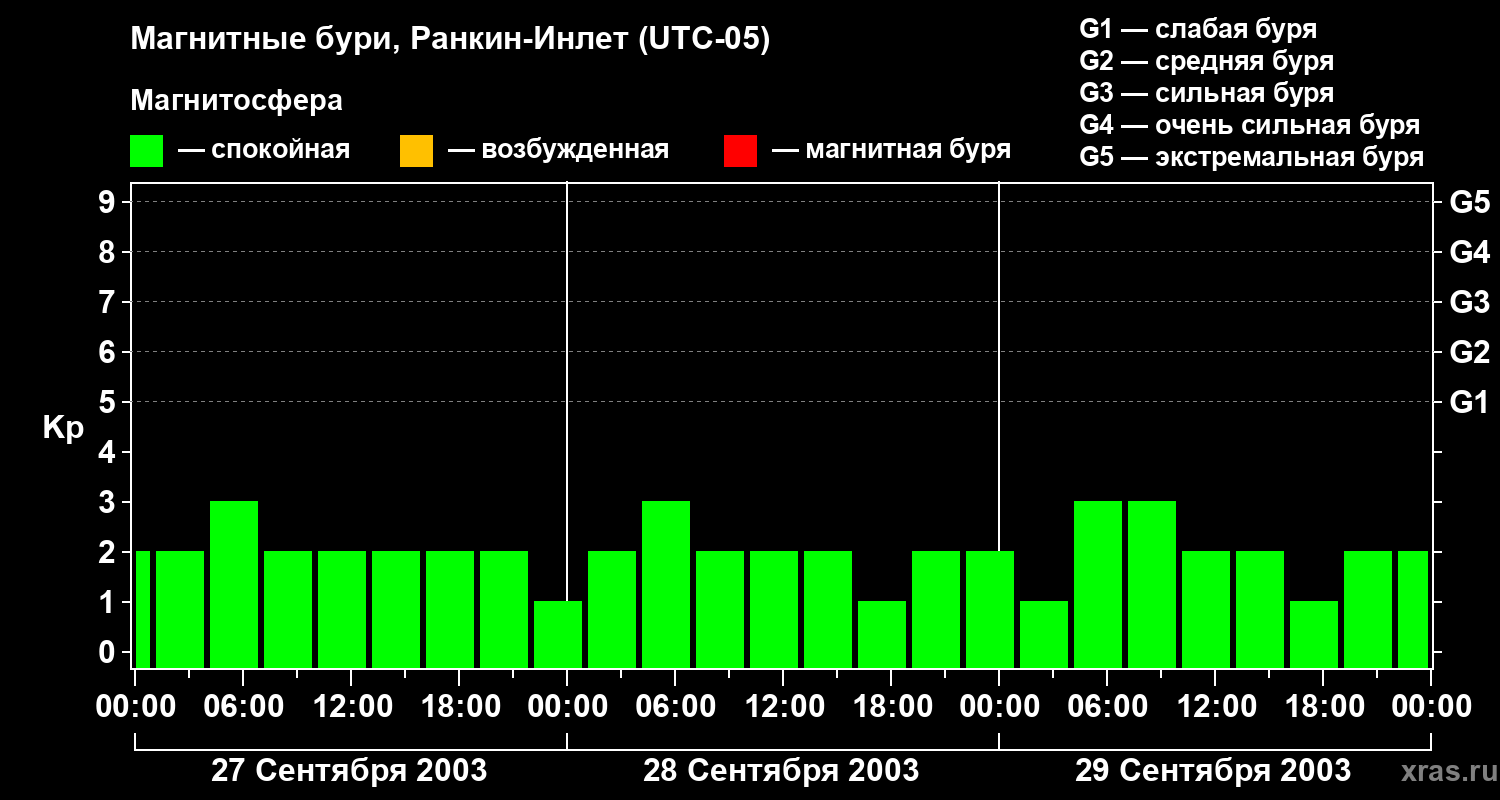 Магнитные бури в Ранкин-Инлете — 29 сентября 2003 года