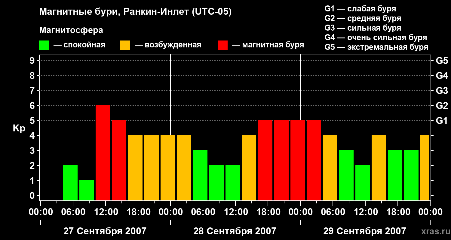 Магнитные бури в Ранкин-Инлете в сентябре 2007 года