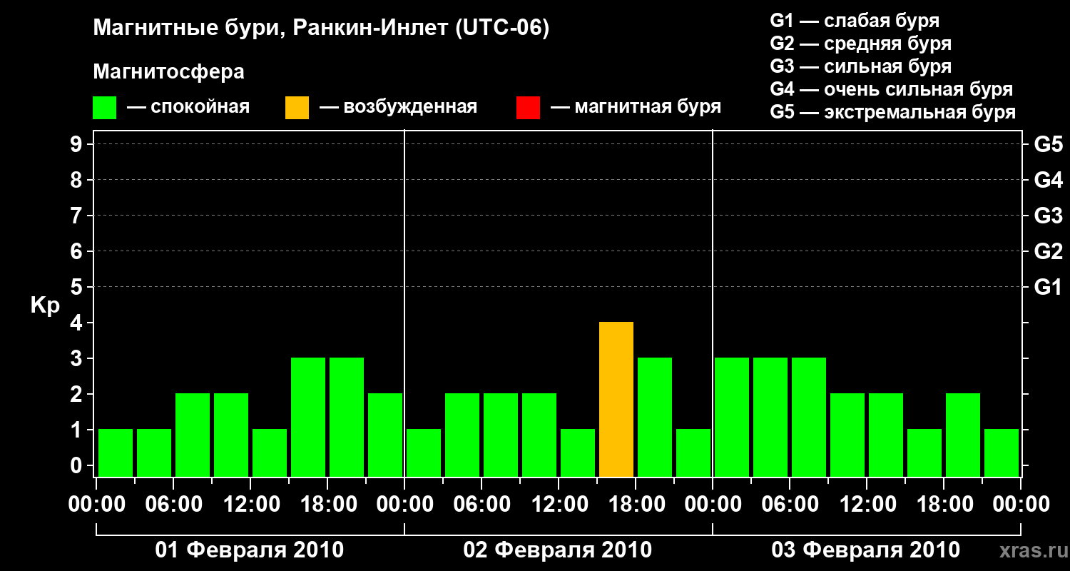 Магнитные бури в Ранкин-Инлете 3 февраля 2010 года