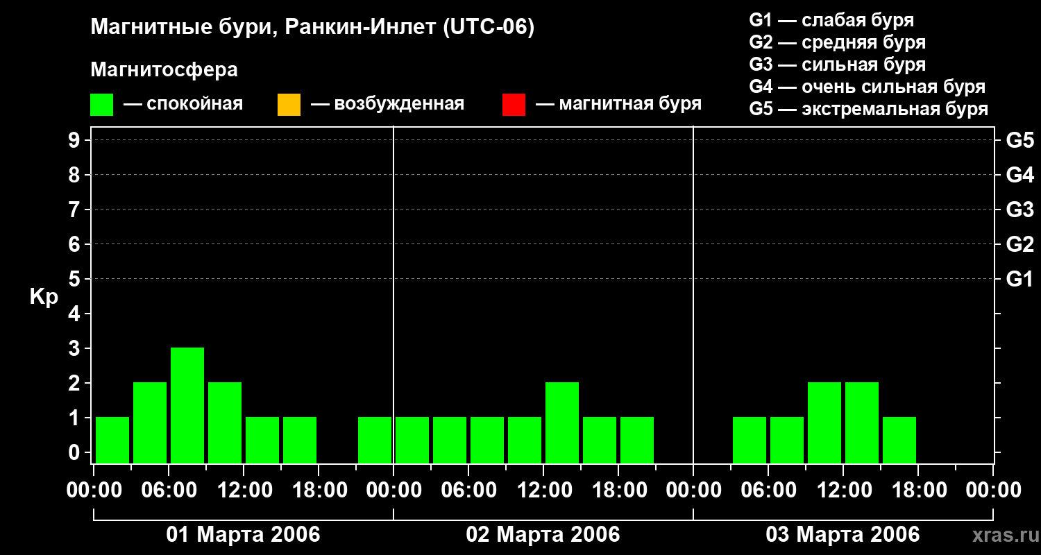 Магнитные бури в Ранкин-Инлете 3 марта 2006 года
