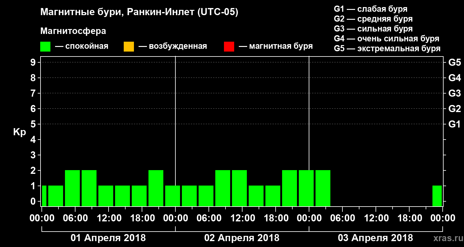 Магнитные бури в Ранкин-Инлете — 3 апреля 2018 года