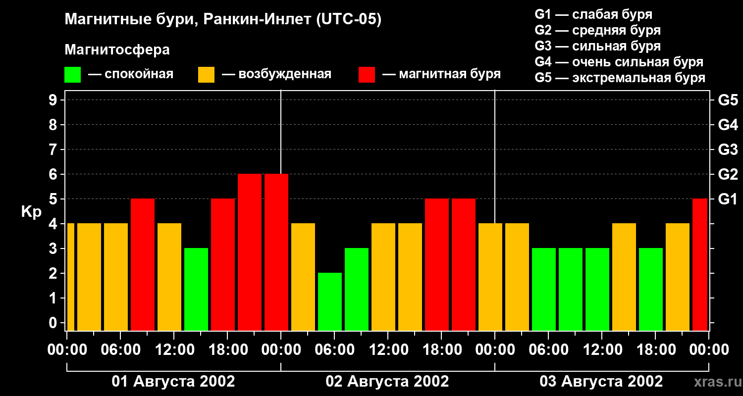 Магнитные бури в Ранкин-Инлете 3 августа 2002 года