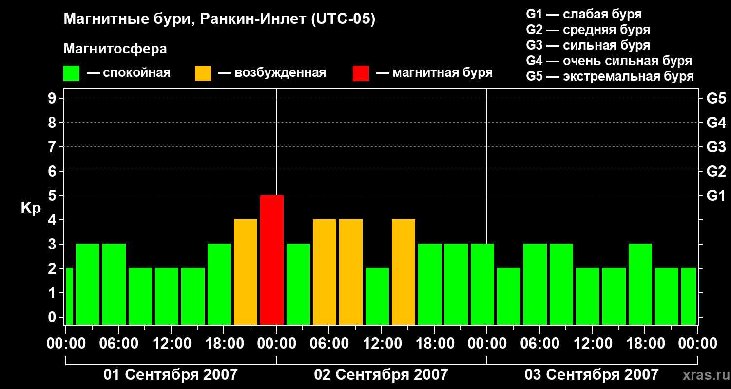 Магнитные бури в Ранкин-Инлете 3 сентября 2007 года