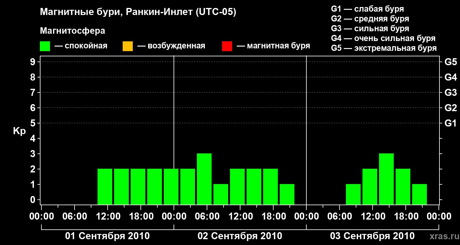 Магнитные бури в Ранкин-Инлете 3 сентября 2010 года