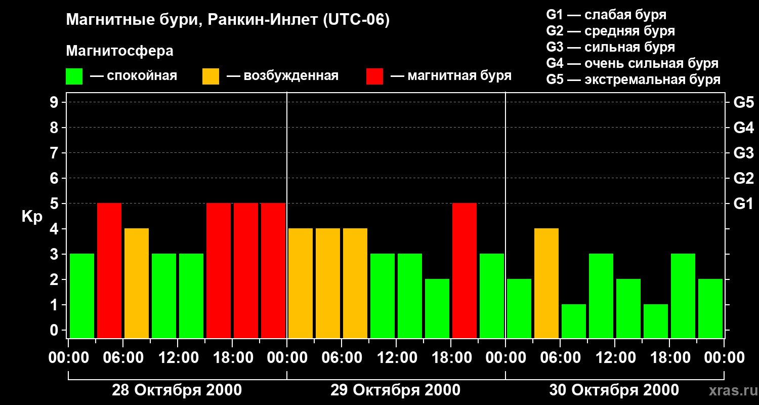 Магнитные бури в Ранкин-Инлете 30 октября 2000 года