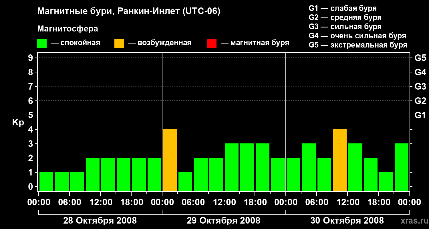 Магнитные бури в Ранкин-Инлете 30 октября 2008 года