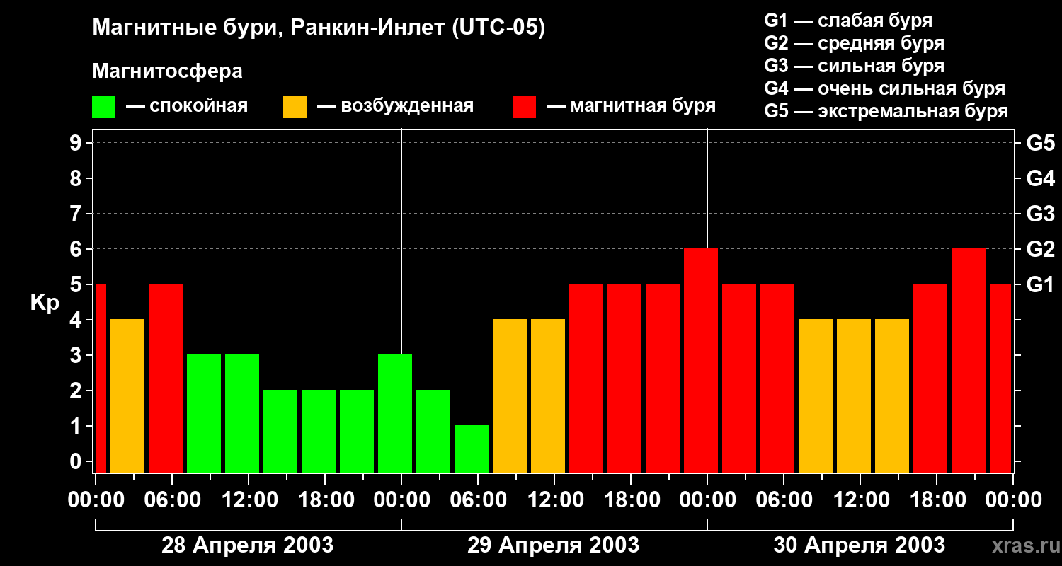 Магнитные бури в Ранкин-Инлете — 30 апреля 2003 года