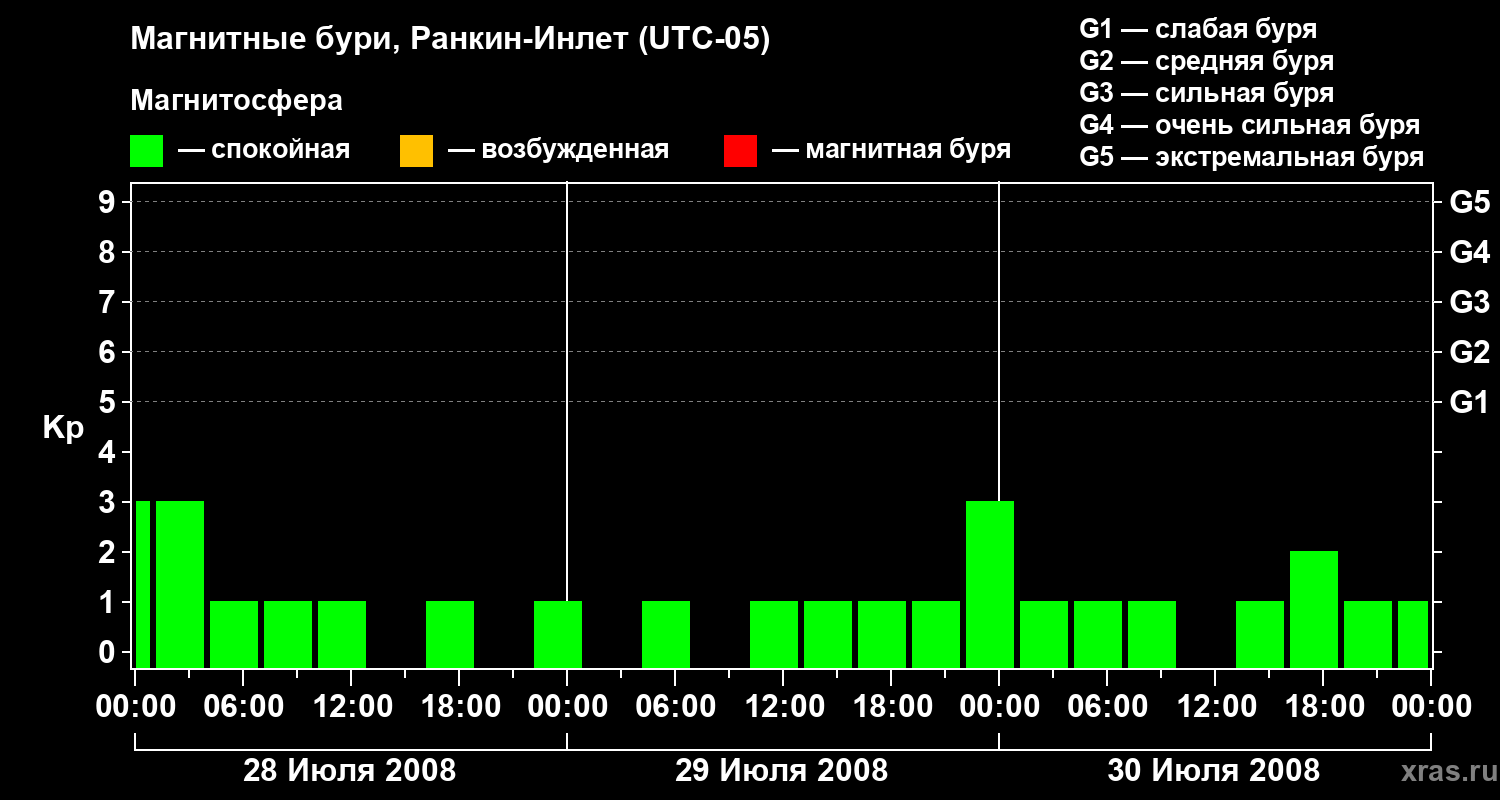 Магнитные бури в Ранкин-Инлете 30 июля 2008 года