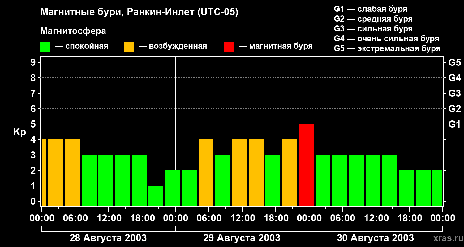 Магнитные бури в Ранкин-Инлете — 30 августа 2003 года