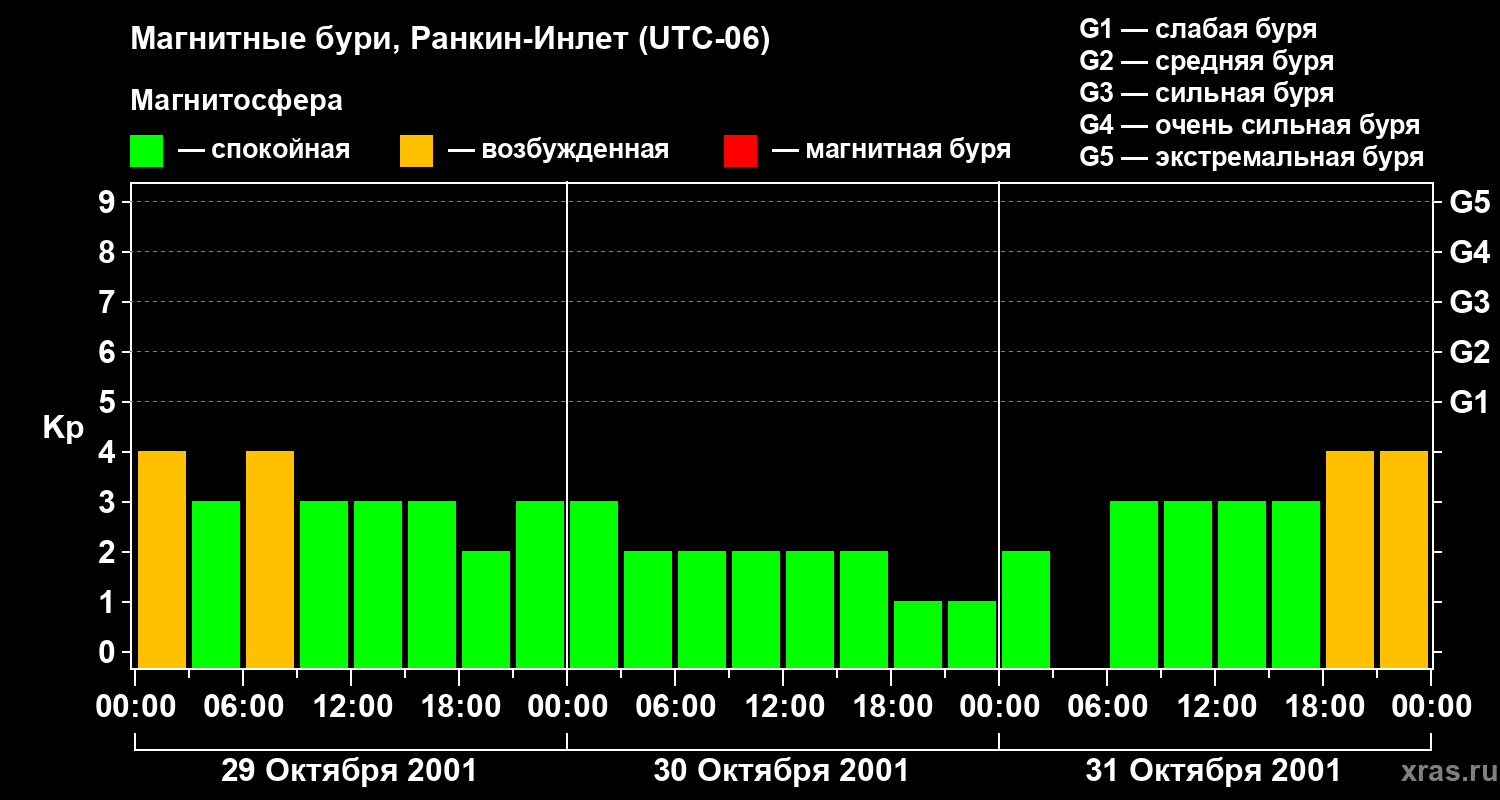 Магнитные бури в Ранкин-Инлете 31 октября 2001 года