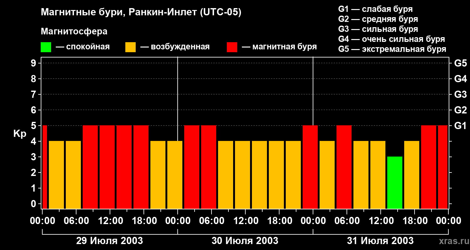 Магнитные бури в Ранкин-Инлете — 31 июля 2003 года