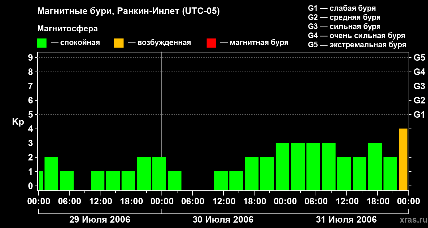 Магнитные бури в Ранкин-Инлете 31 июля 2006 года