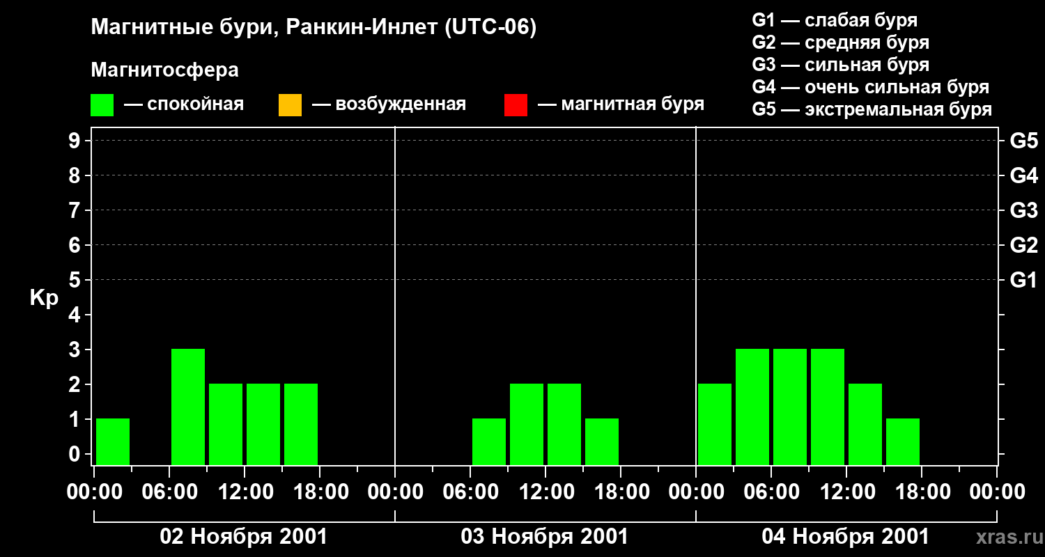 Магнитные бури в Ранкин-Инлете 4 ноября 2001 года