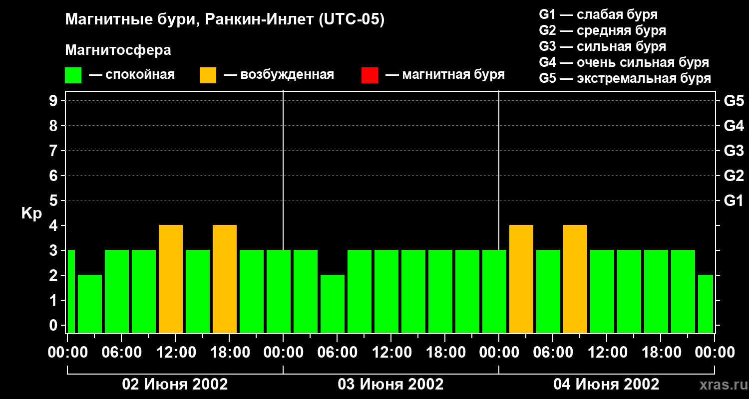 Магнитные бури в Ранкин-Инлете 4 июня 2002 года