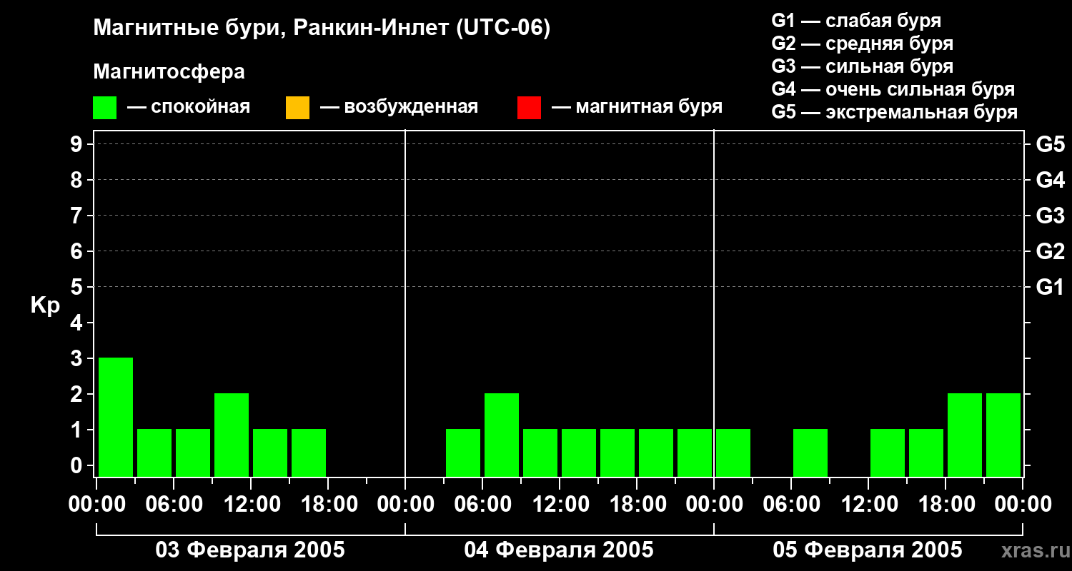 Магнитные бури в Ранкин-Инлете 5 февраля 2005 года