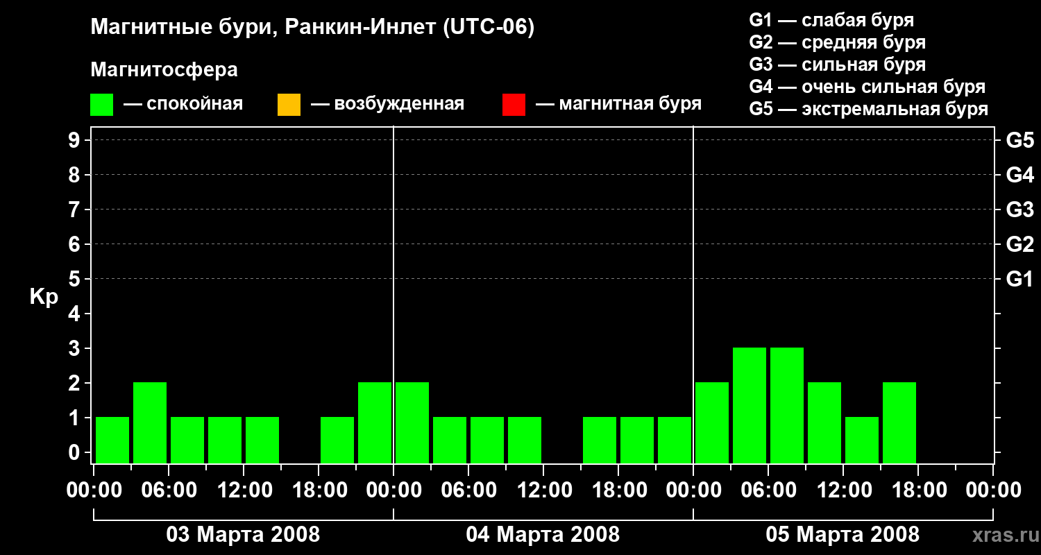 Магнитные бури в Ранкин-Инлете 5 марта 2008 года