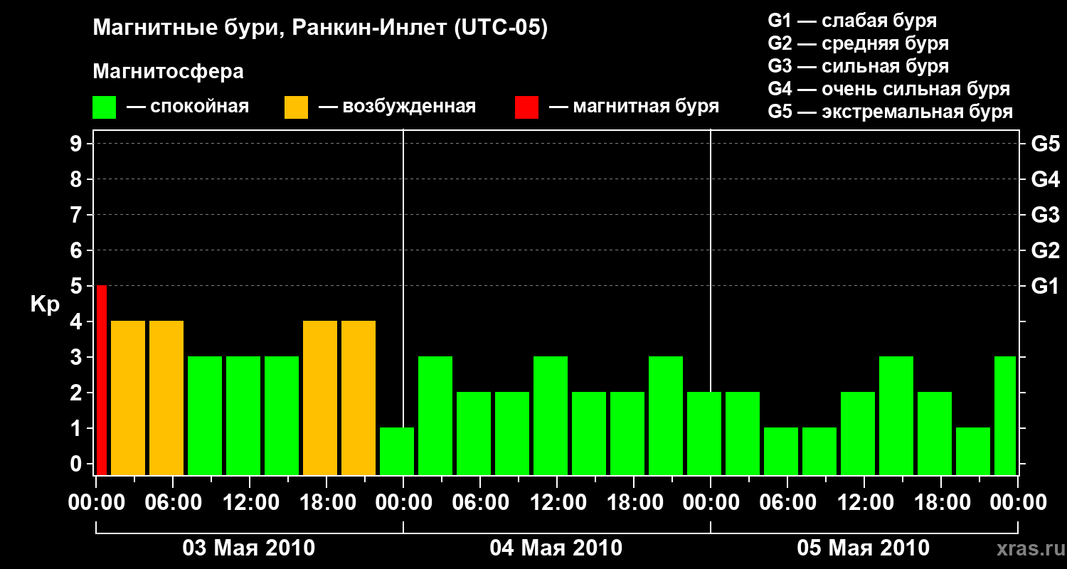 Магнитные бури в Ранкин-Инлете 5 мая 2010 года