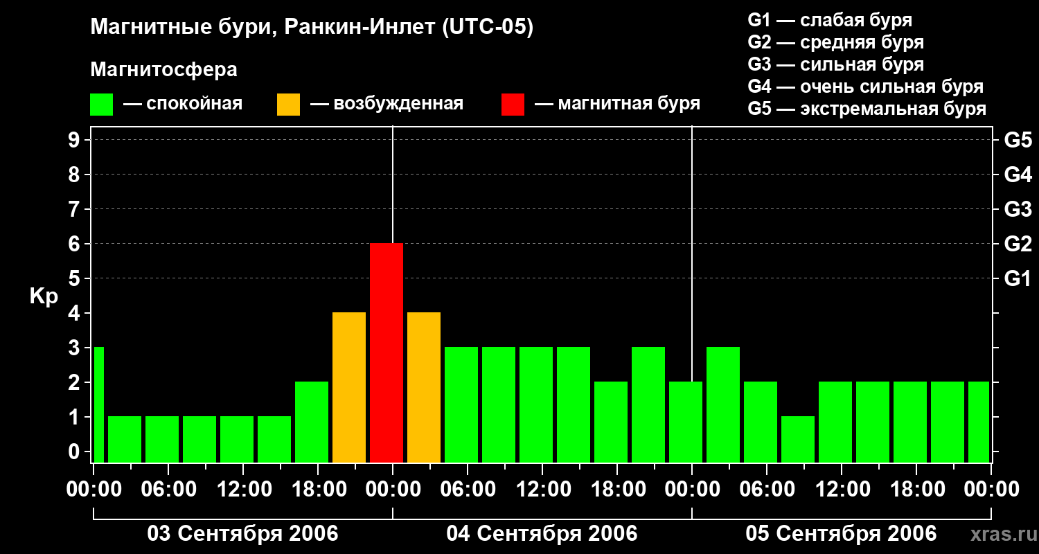 Магнитные бури в Ранкин-Инлете 5 сентября 2006 года