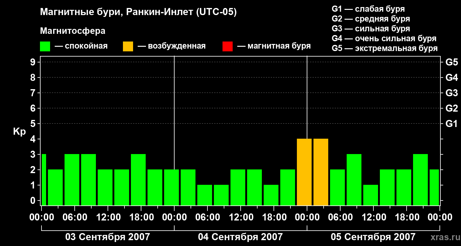 Магнитные бури в Ранкин-Инлете 5 сентября 2007 года