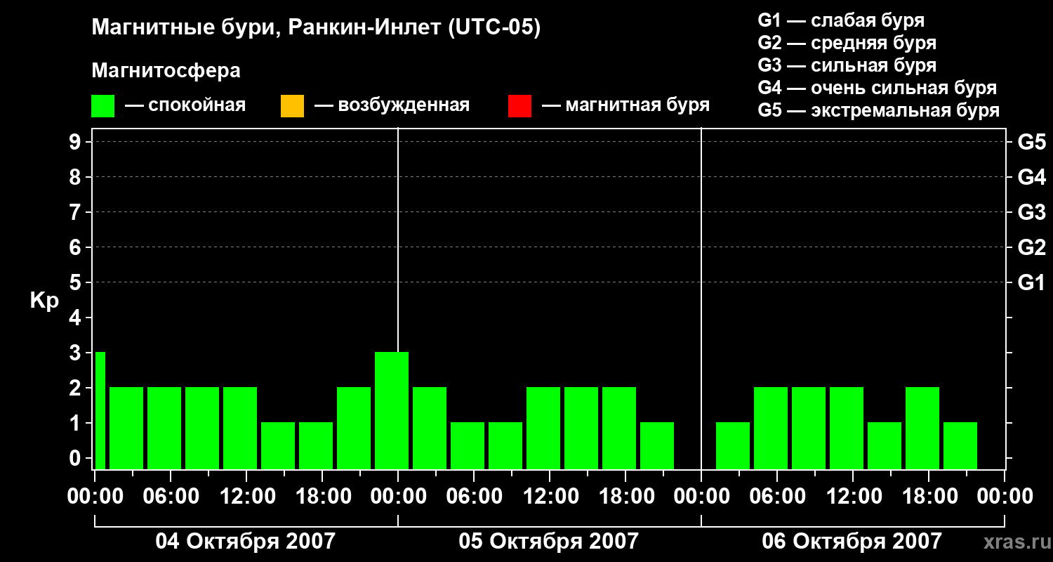 Магнитные бури в Ранкин-Инлете в октябре 2007 года