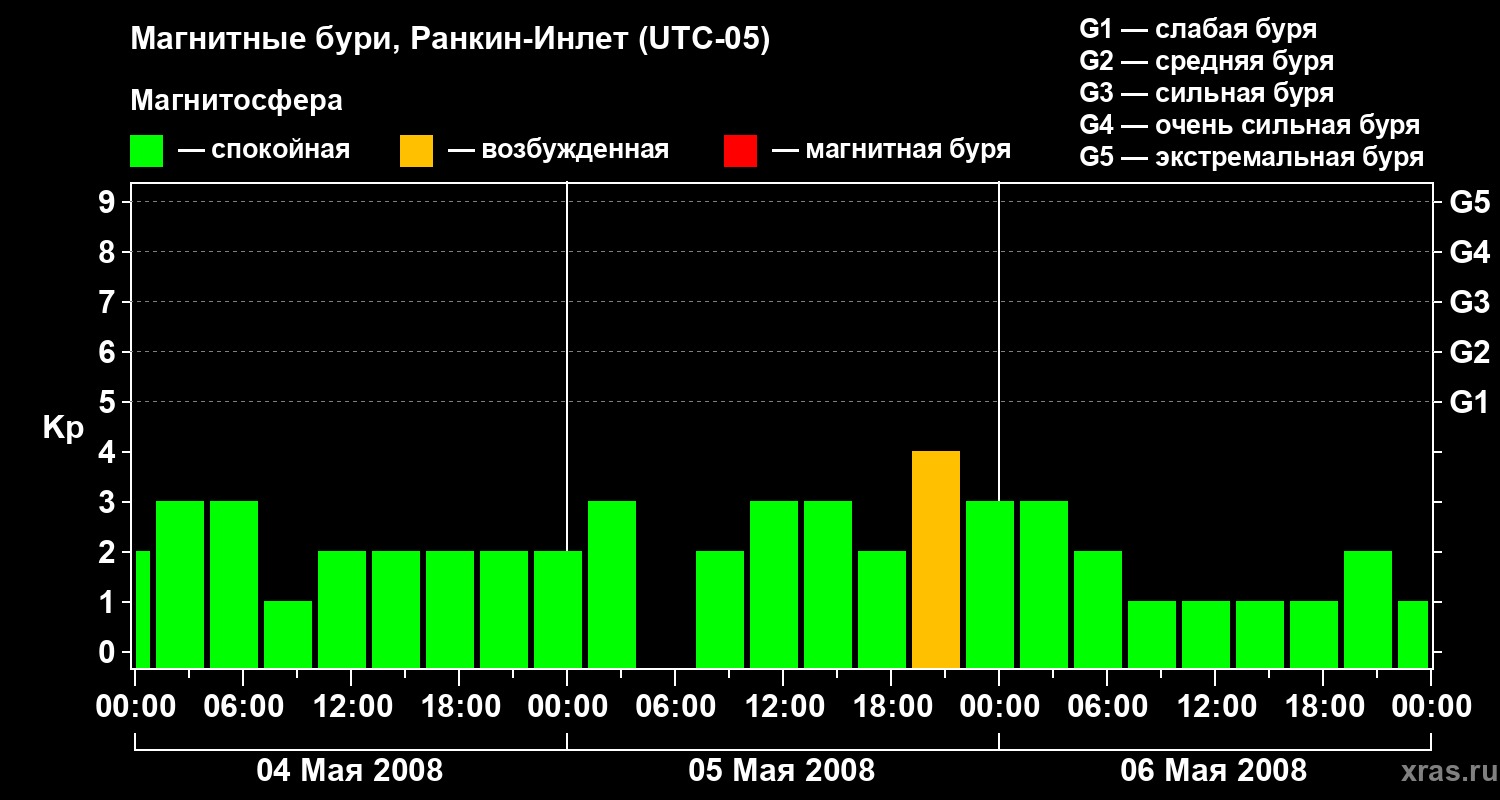 Магнитные бури в Ранкин-Инлете в мае 2008 года