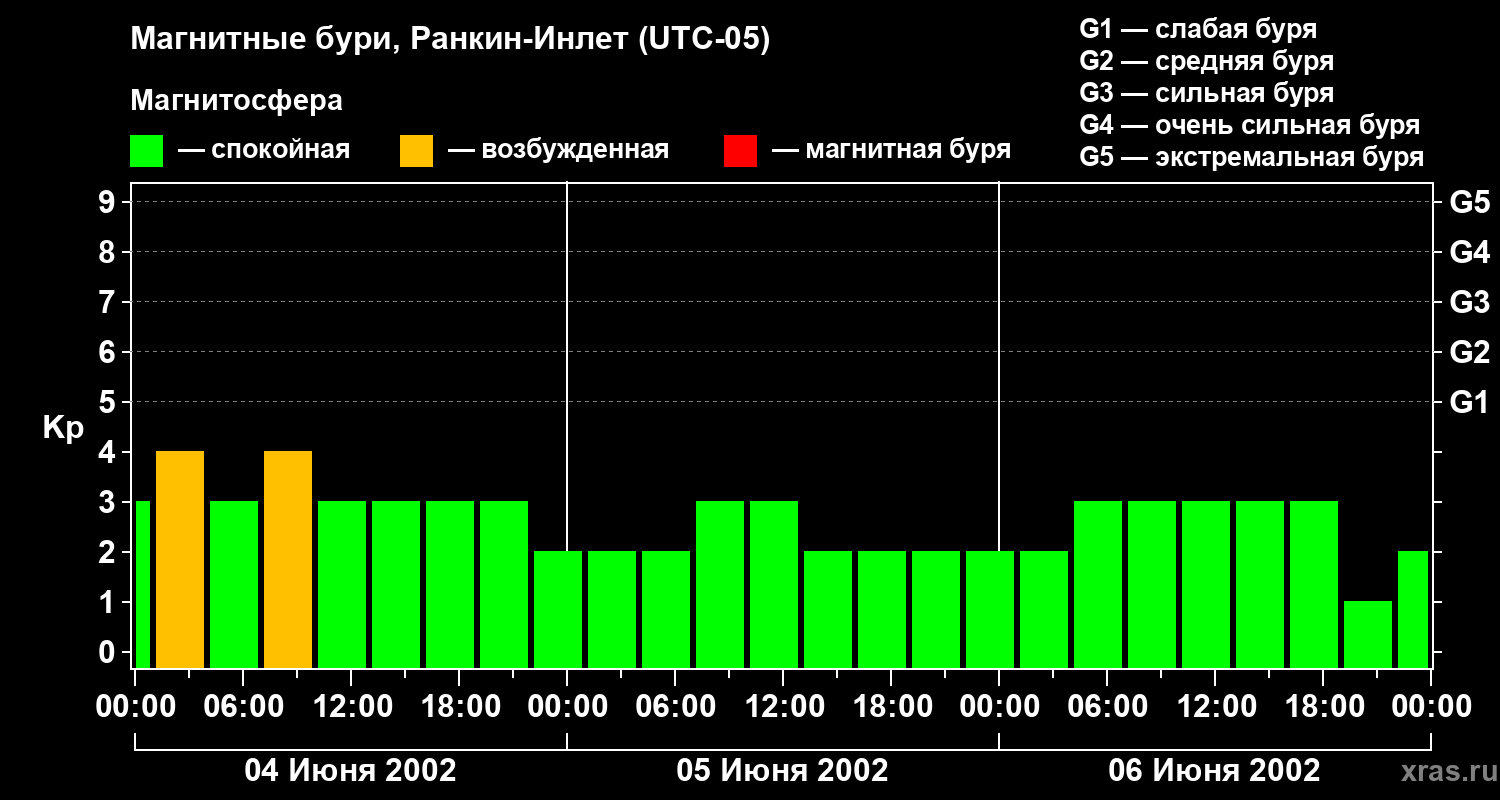 Магнитные бури в Ранкин-Инлете 6 июня 2002 года